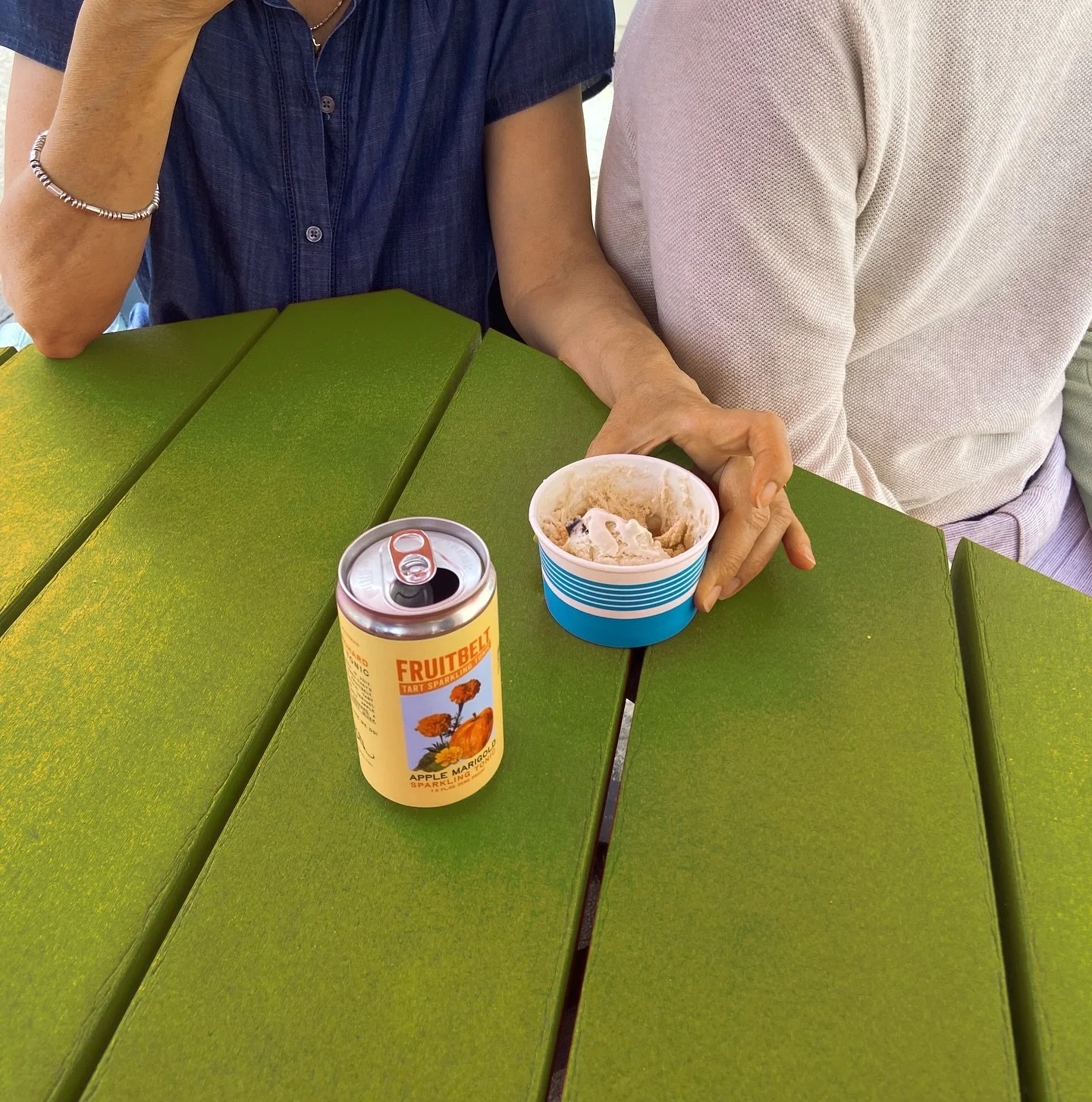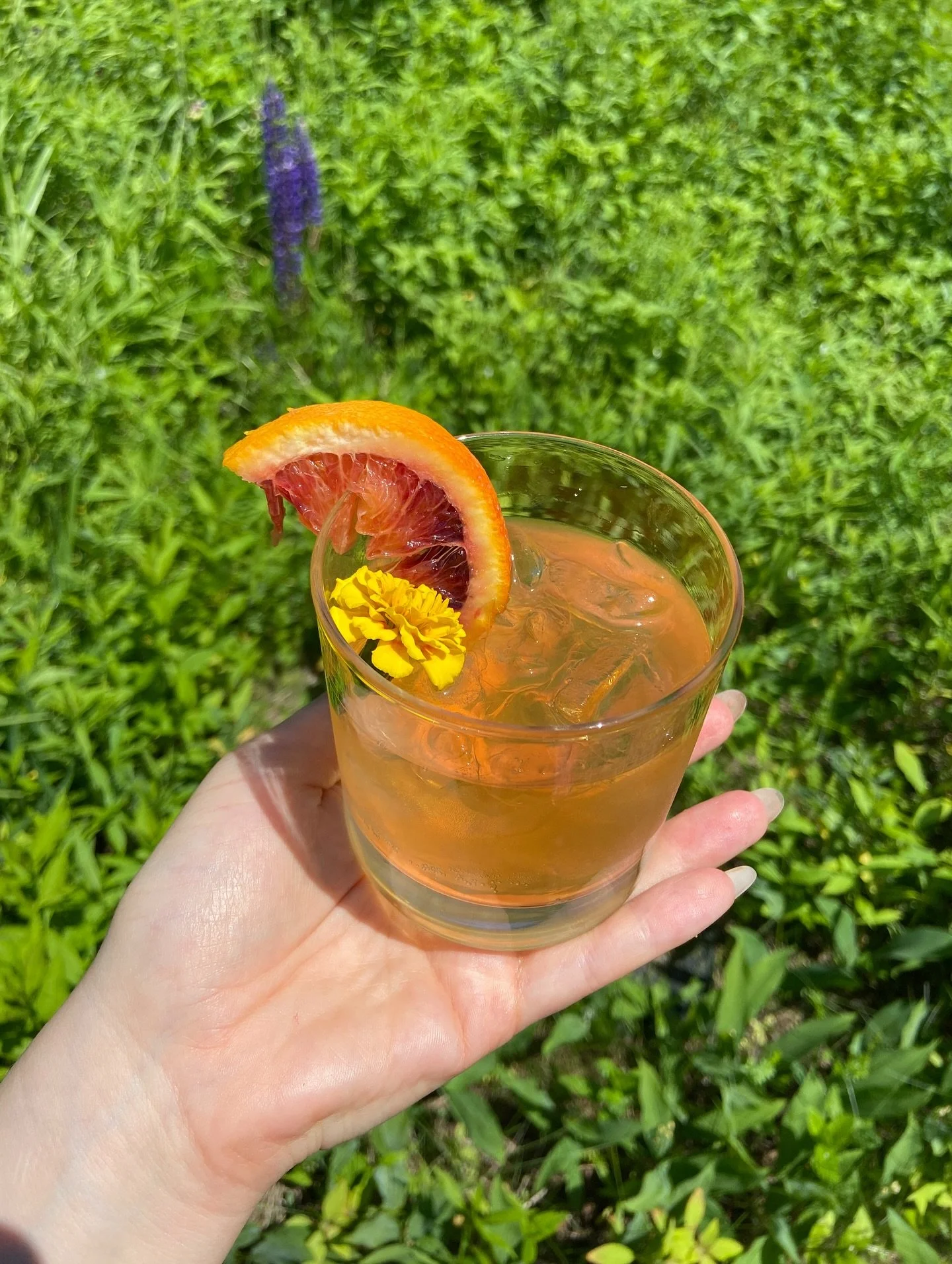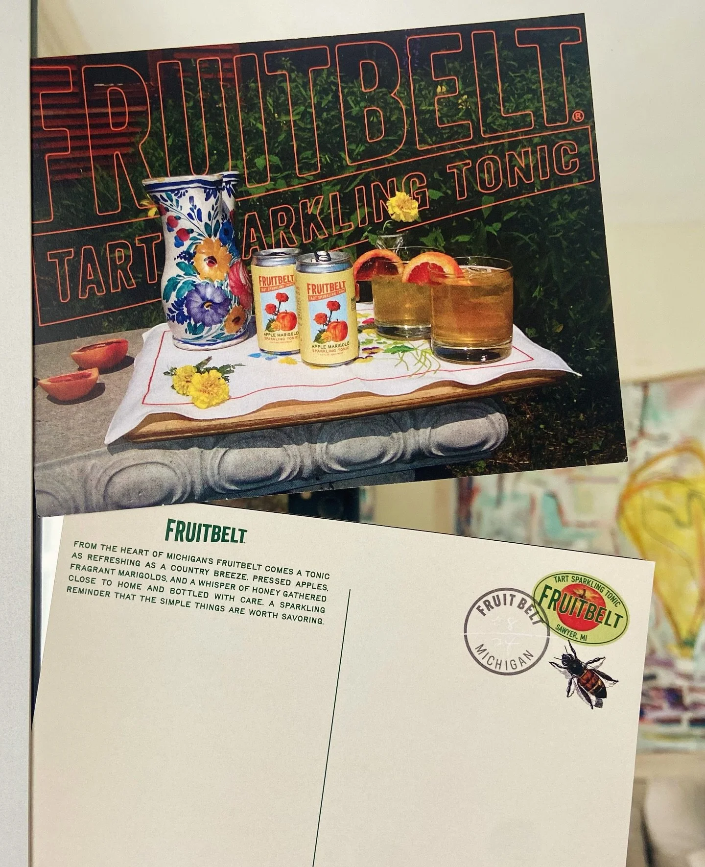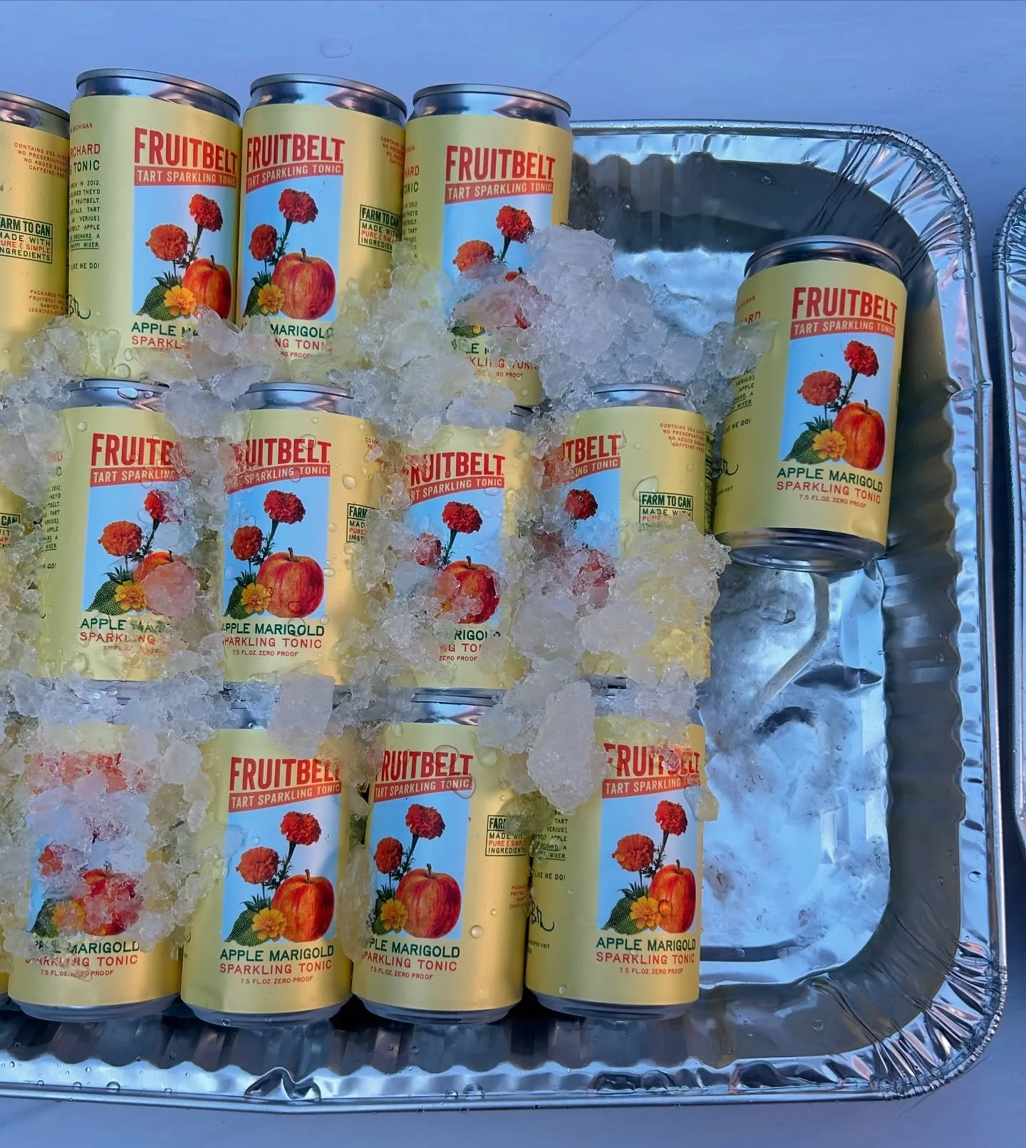 Pressed apples from Dietrich Orchards, pressed unripe grapes from Dablon Vineyards, botanicals sourced and steeped in MI by Robyn Cleveland, and honey from Hudsonville Honey