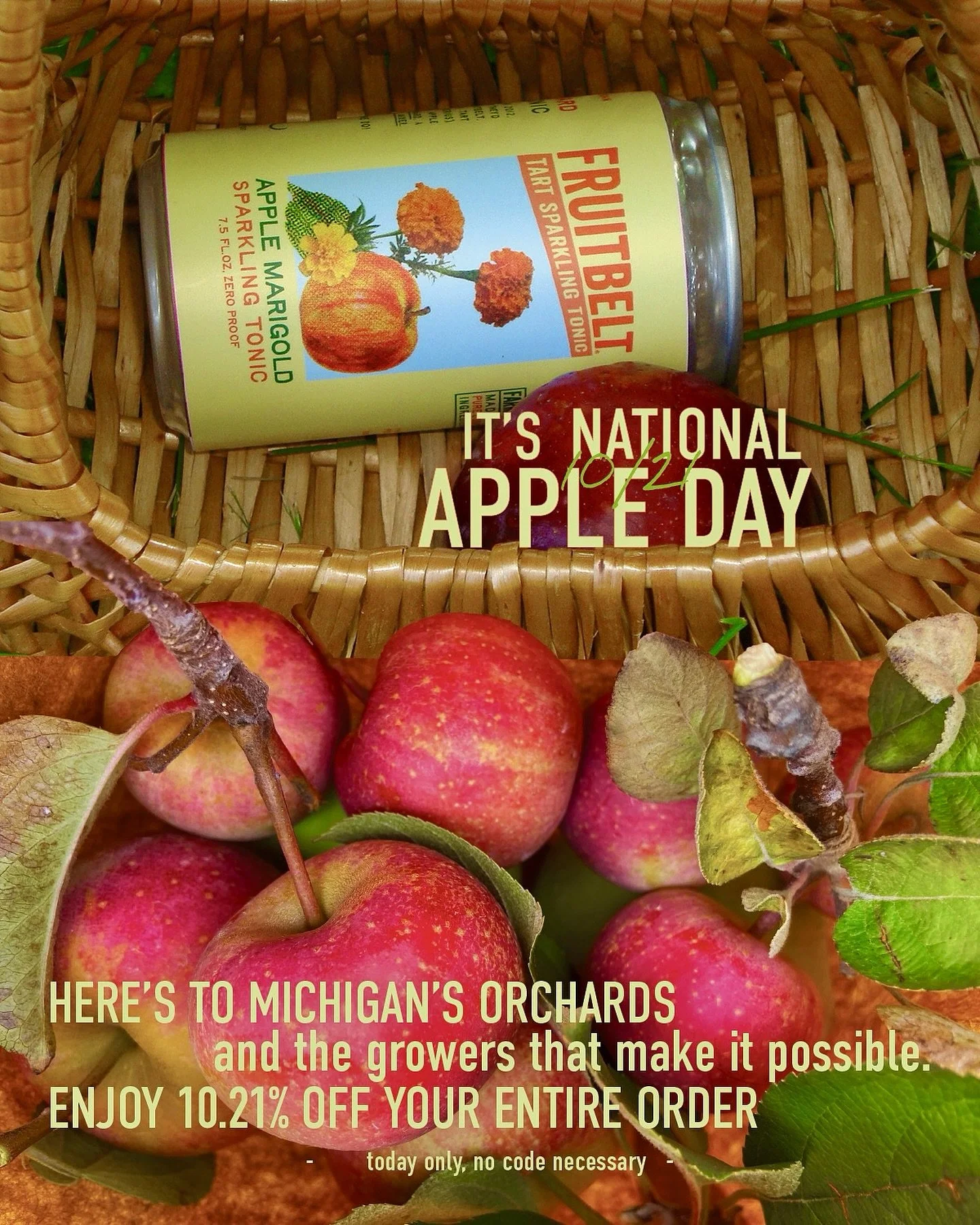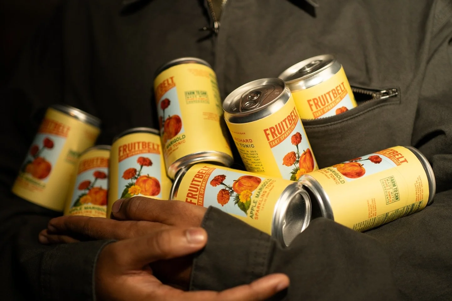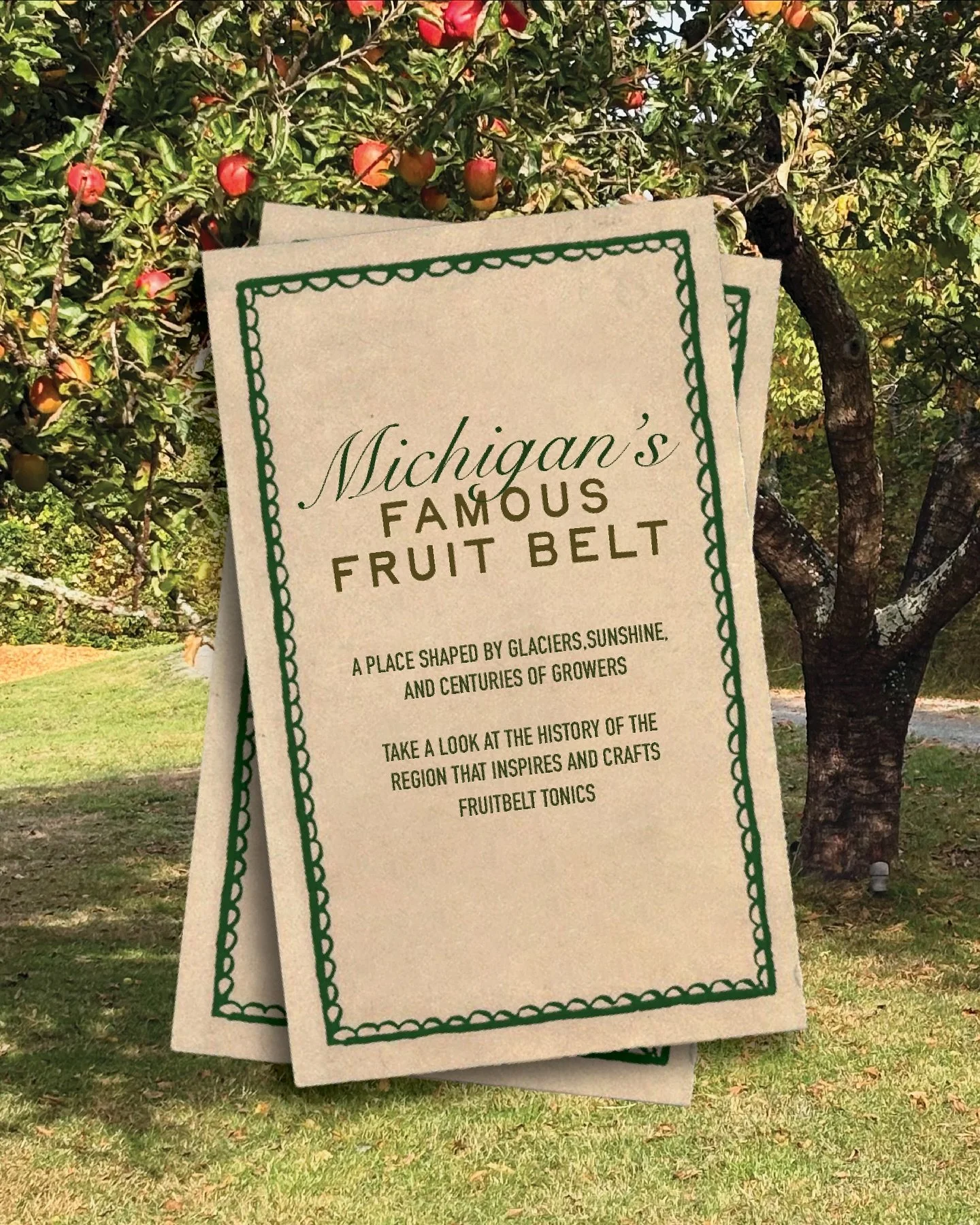 Pressed apples from Dietrich Orchards, pressed unripe grapes from Dablon Vineyards, botanicals sourced and steeped in MI by Robyn Cleveland, and honey from Hudsonville Honey